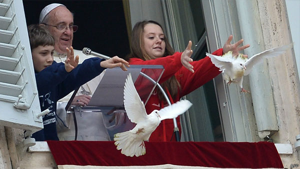 يطلق حمامة السلام من شرفته بالفاتيكان[/caption]