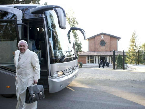 ركوبه الأتوبيس مع بقية كهنة الفاتيكان[/caption]