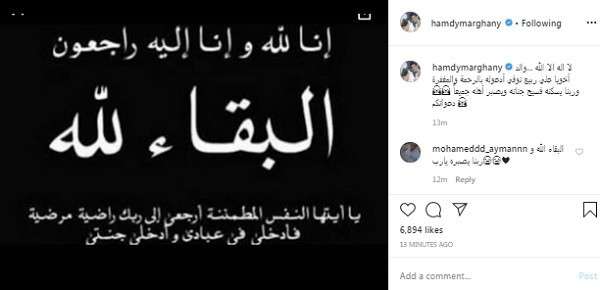 كما كتبت الفنانة سارة درزاوي: "إنا لله و إنا إليه راجعون.. توفي إلي رحمة الله تعالي والد أخونا علي ربيع.. ربنا يغفرله ويرحمه ويسكنه فسيح جناته و يصبر أهله".