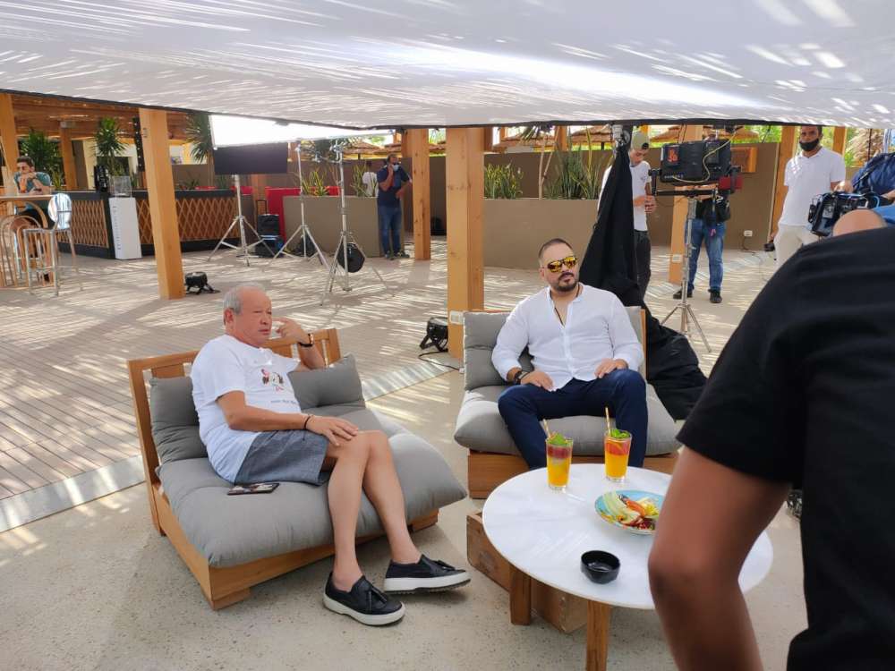 رامي عياش ونجيب ساويرس في كواليس تصوير فيديو كليب مهرجان الجونة